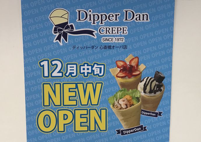 心斎橋OPAの地下2階、フードスタンドに12月15日、美味しいクレープのお店「ディッパーダン(Dipper Dan)」がオープンします。