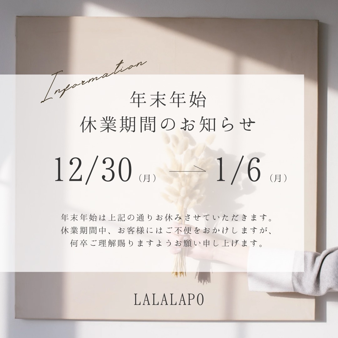 年内まだ少し営業期間が残っておりますが、年末年始の営業状況のお問い合わせをいただく時期となってきましたので、少し早いですが年末年始休業期間のお知らせをさせていただきます。