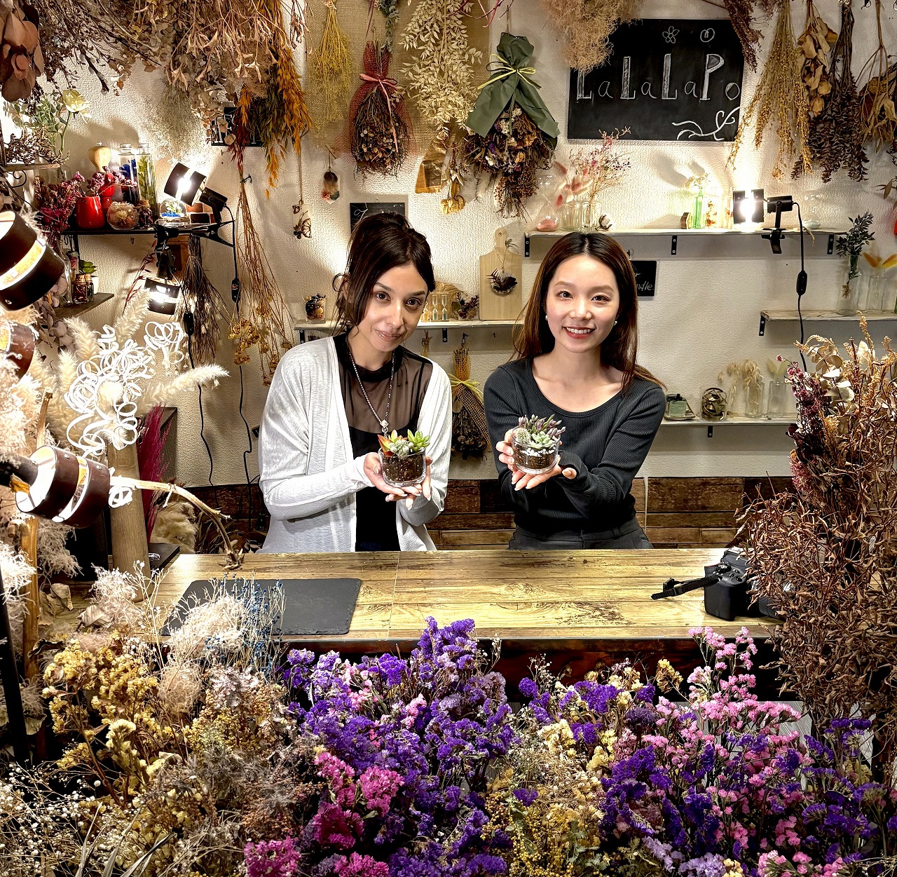LALALAPOでは、サボテン・多肉植物の寄せ植え体験をはじめ、真鍮やシルバーで制作できるバングル作り体験やシルバーリング作りの体験、ドライフラワーを材料としたキャンドル作りなど10数種類の体験を開催しておりますので、心斎橋にお越しの際にはぜひご利用ください。