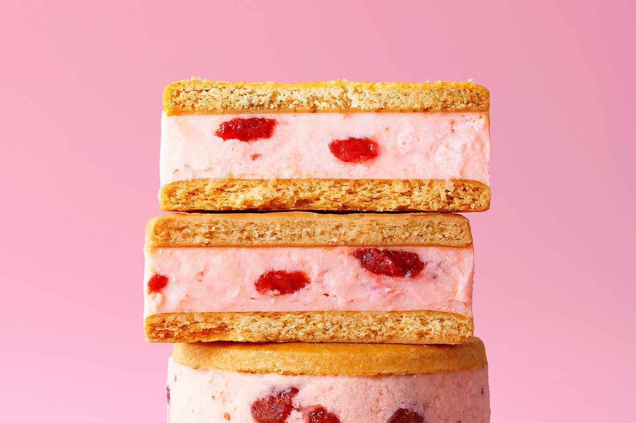 JR池袋駅北改札前店、東京ギフトパレット、梅田阪神本店、長期催事出店舗で販売される「リッチミルクサンド〈いちご〉」